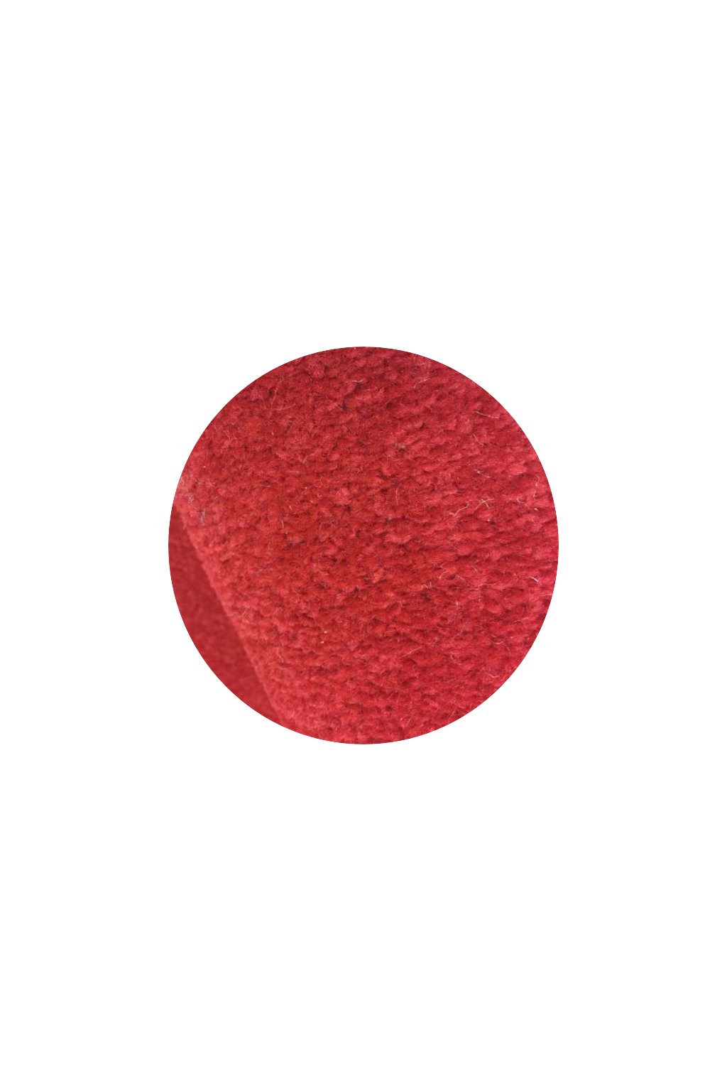 Koberec tmavě červený, obšitý ze všech stran. Délka 8m, šířka 1m.